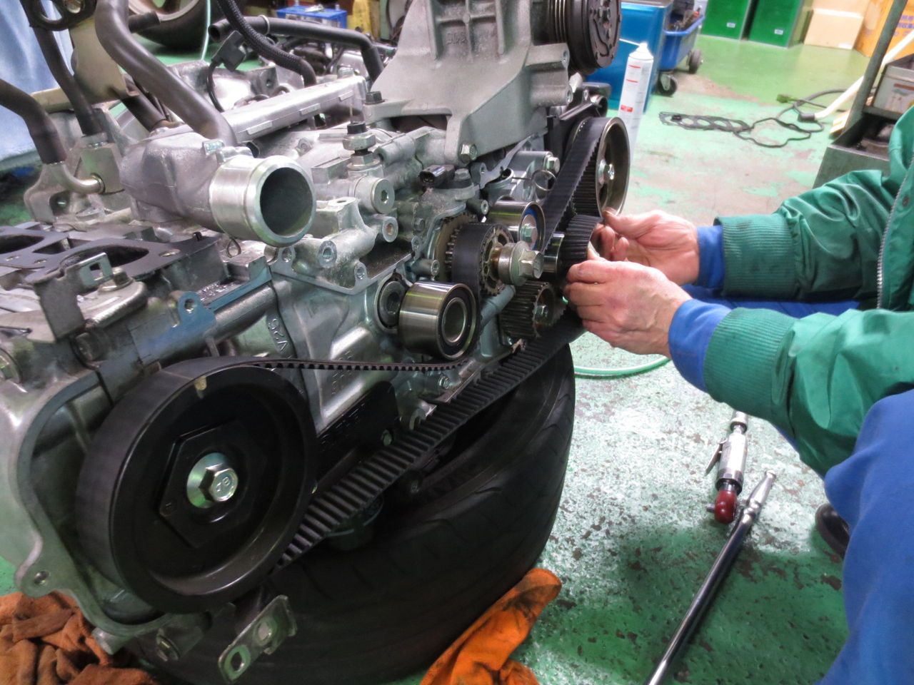 次にタイミングベルトをかけ直し