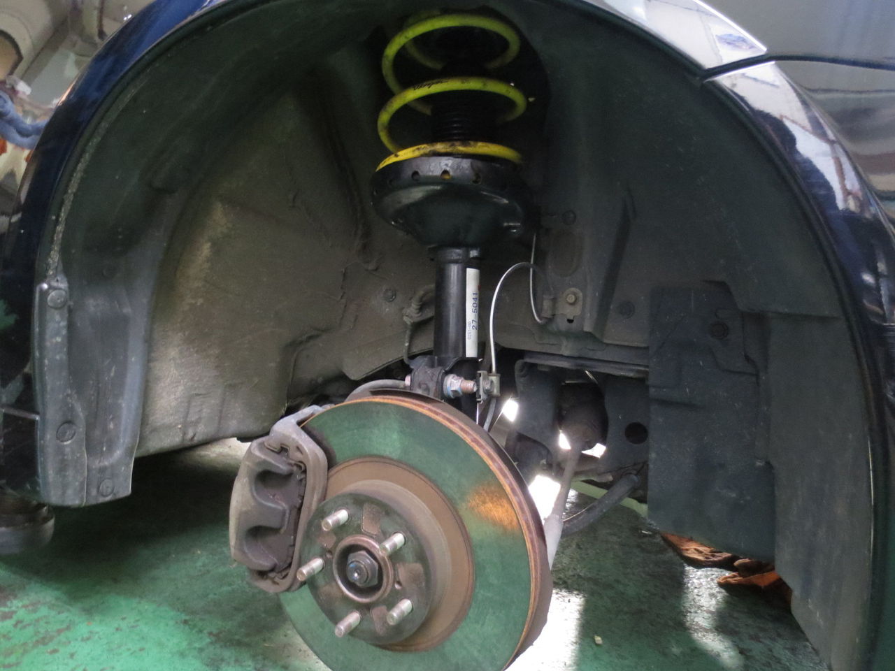 中古のストラットに社外のコイルスプリング(黄色)を